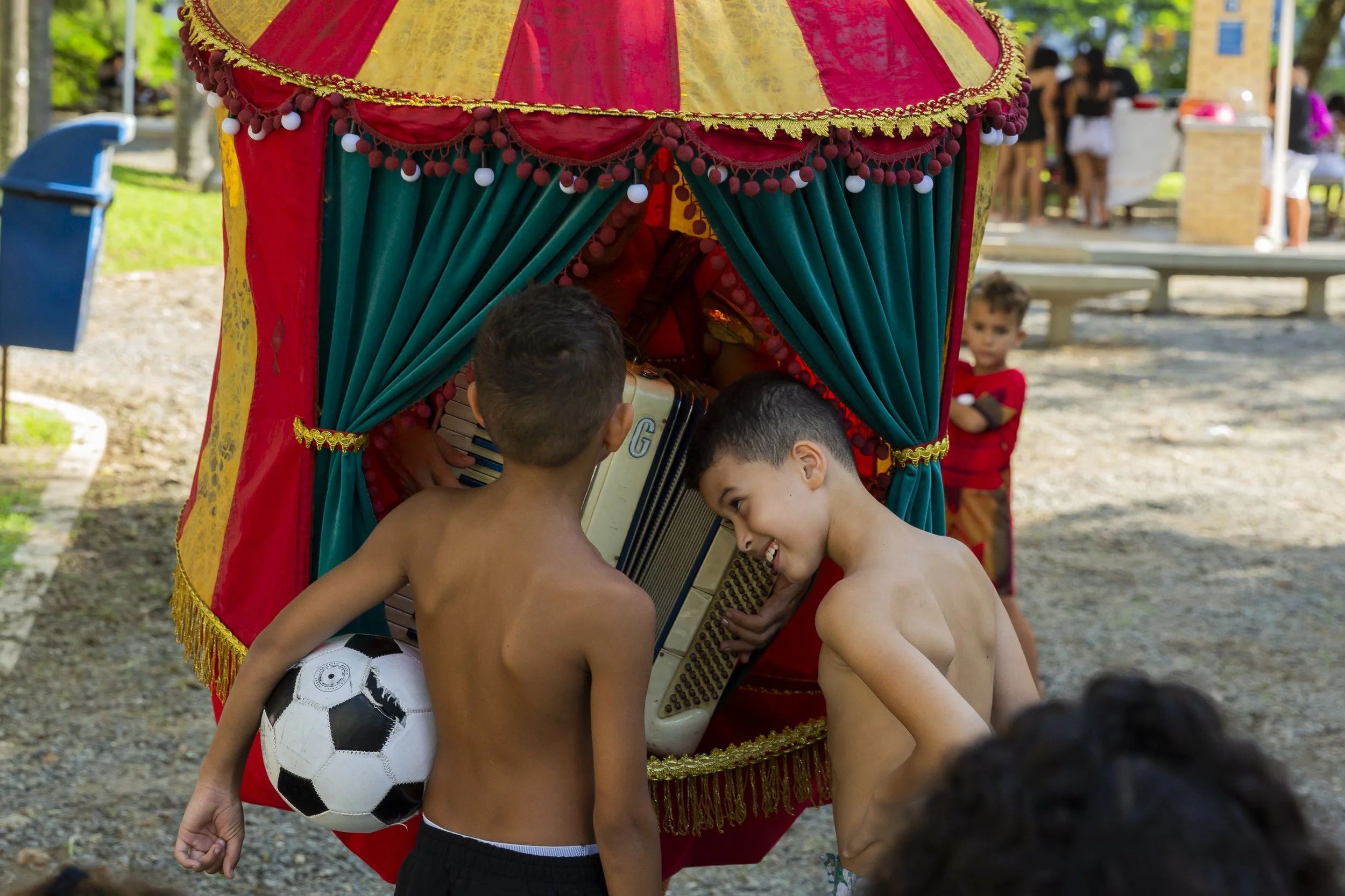 Le dimanche s'adressait au public familial avec la présentation du spectacle Meu Chapéu é o Céu, mis en scène par Leo Sykes. Le spectacle apporte une narration joyeuse et féminine, avec un mélange de langages qui imprègne l'univers de l'acrobatie, du clown et du cirque-théâtre. Au milieu de la magie et du désordre, trois lavandières interagissent les unes avec les autres, résolvant, favorisant les conflits et créant un univers enchanté.